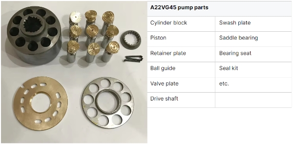 motors, charge pumps, hydraulic valves, seal kit, etc.