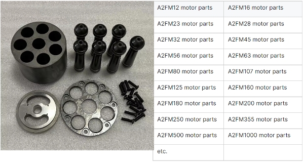 motors, charge pumps, hydraulic valves, seal kit, etc.