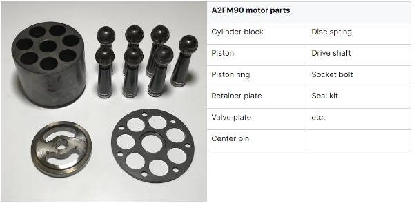 motors, charge pumps, hydraulic valves, seal kit, etc.