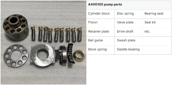 motors, charge pumps, hydraulic valves, seal kit, etc.