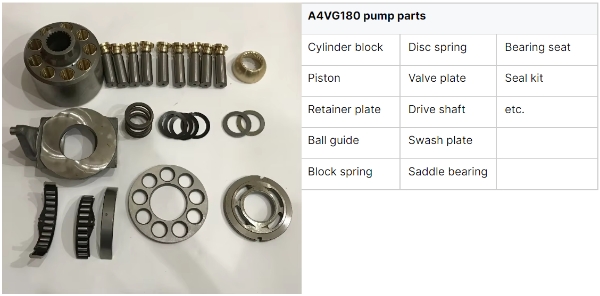 motors, charge pumps, hydraulic valves, seal kit, etc.