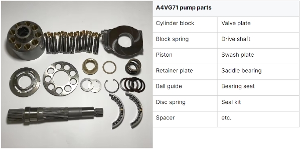 motors, charge pumps, hydraulic valves, seal kit, etc.