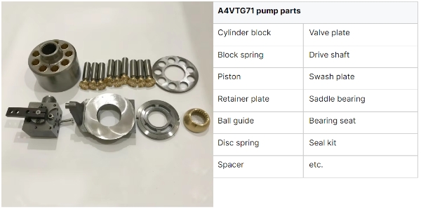 motors, charge pumps, hydraulic valves, seal kit, etc.
