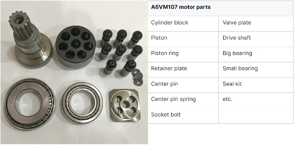 motors, charge pumps, hydraulic valves, seal kit, etc.
