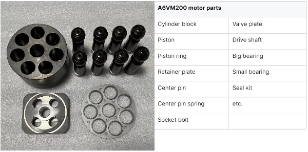 motors, charge pumps, hydraulic valves, seal kit, etc.