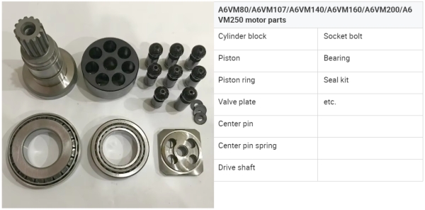 motors, charge pumps, hydraulic valves, seal kit, etc.