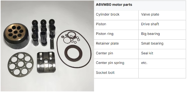 Rexroth A6VM80 hydraulic motor parts replacement