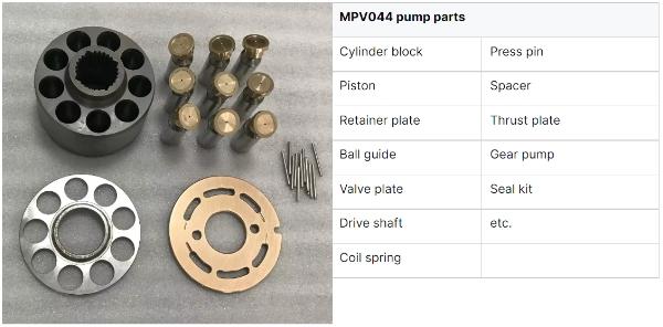 motors, charge pumps, hydraulic valves, seal kit, etc.