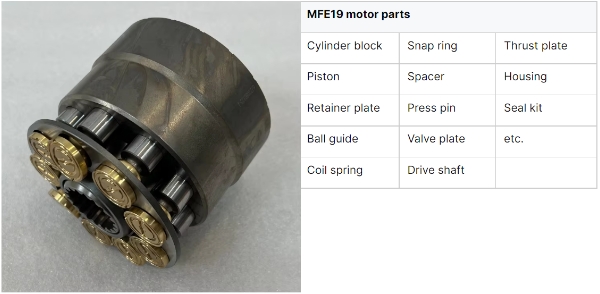 motors, charge pumps, hydraulic valves, seal kit, etc.